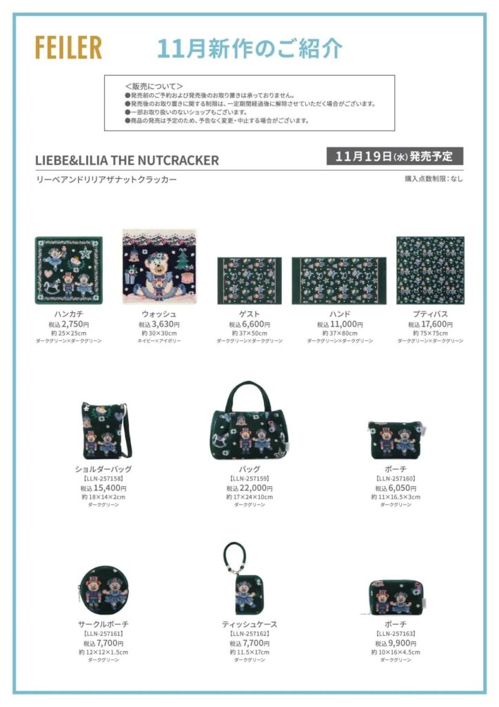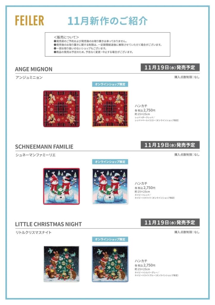 ※フェイラーコラボハンカチの在庫の有無、販売状況はリンク先、及び現地にてご確認ください
