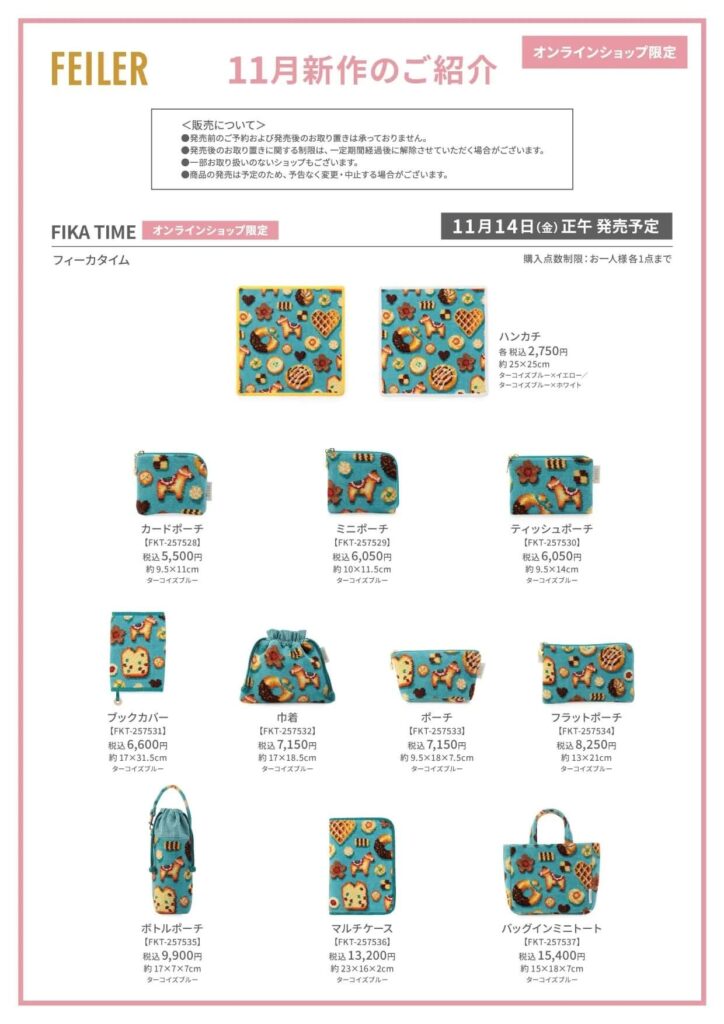 【フェイラー新作】『フィーカタイム』新色発売(オンラインショップ限定) 正午~