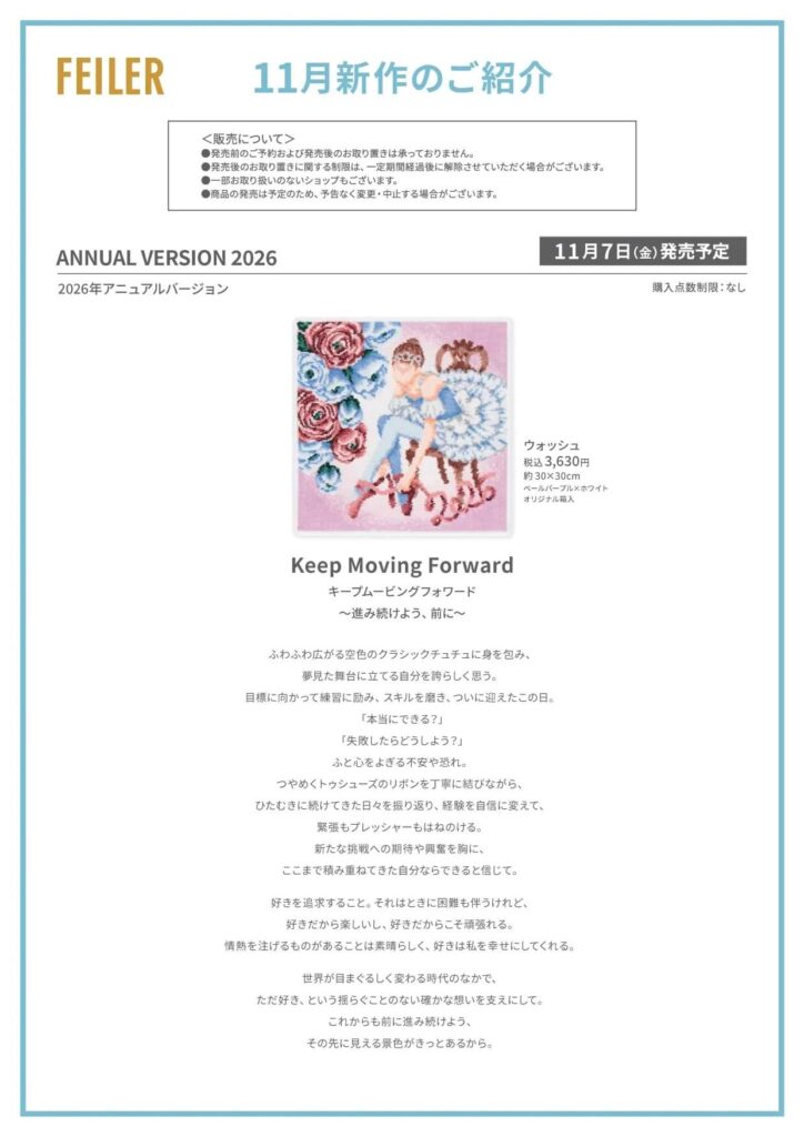 【フェイラー新作】2026年アニュアルバージョン『キープムービングフォワード』発売