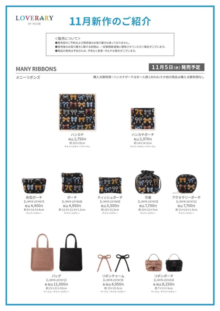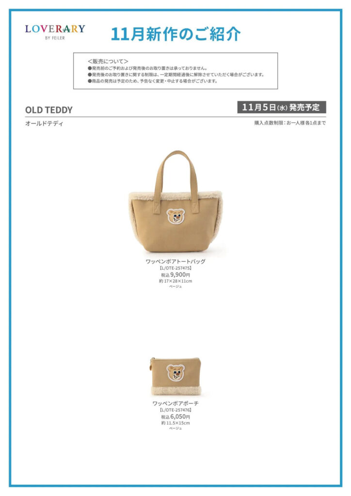 【ラブラリーバイフェイラー新作】『メニーリボンズ』『オールドテディ』ボアトート&ポーチ発売