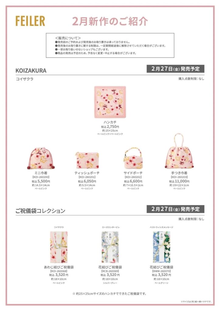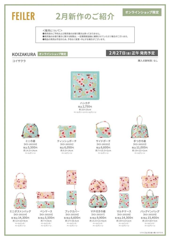 【フェイラー新作】『コイザクラ』(オンラインショップ限定)発売 正午~