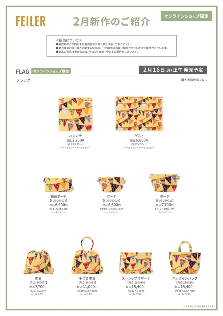 【フェイラー新作】『フラッグ』新色(公式オンラインショップ限定)発売 正午~