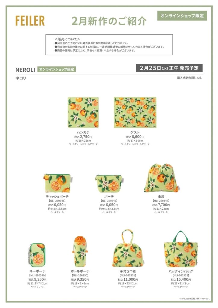 【フェイラー新作】『ネロリ』新色(公式オンラインショップ限定)発売 正午~