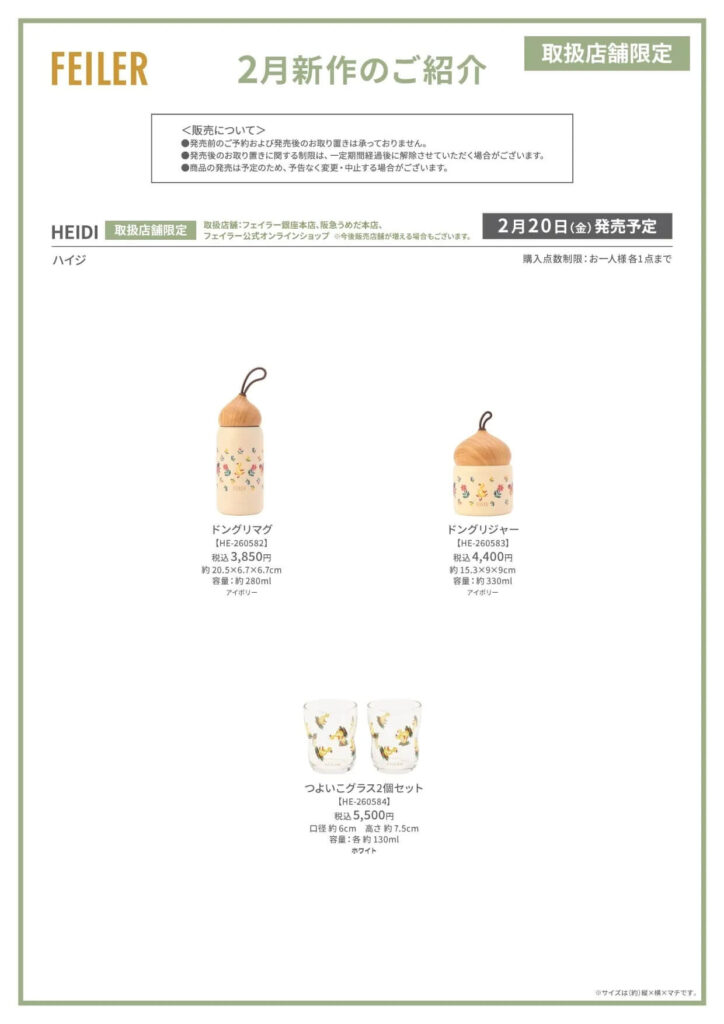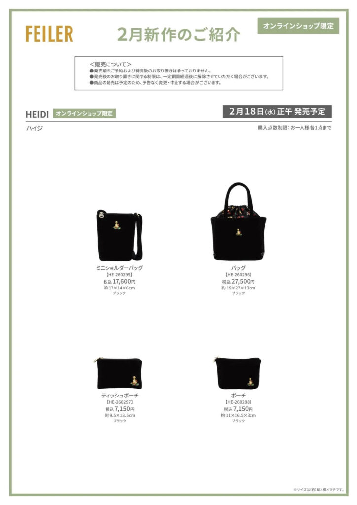 【フェイラー新作】『ハイジ』新作(公式オンラインショップ限定)発売 正午~