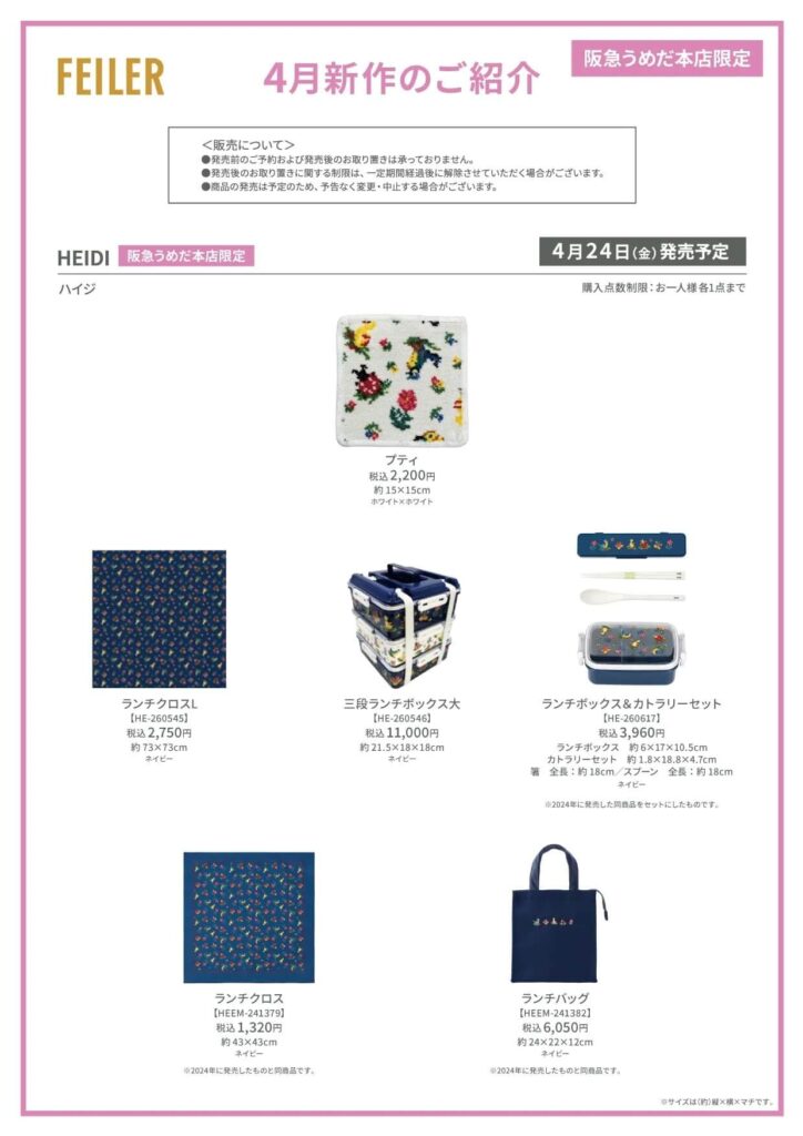 【フェイラー新作/店舗限定】阪急うめだ本店限定『ハイジ』発売
