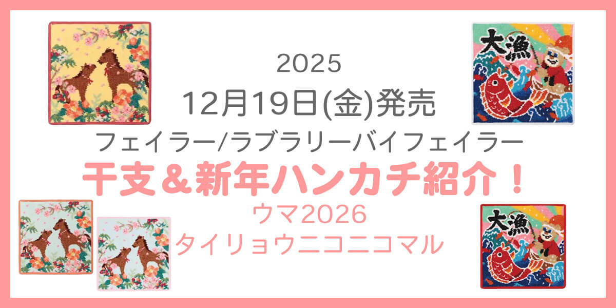 この記事では、フェイラー干支ハンカチ『ウマ2026』、ラブラリーバイフェイラー新作ハンカチ『タイリョウニコニコマル』の商品詳細、販売情報をまとめていきます🐿