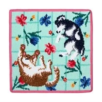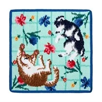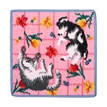 春の花々に包まれた犬と猫の幸せなひとときを、フェイラーならではの繊細なシュニール織で丁寧に表現した『FLOWER』は全4色展開。
